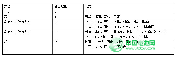 从分地区景气运行情况来看,在纳入监测的大陆地区31个省市自治区中,2个省市进入过热区间,10个省市进入趋冷区间。具体分布情况如下所示。