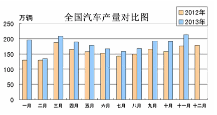 据中国汽车工业协会统计分析,2013年11月,汽车产销呈稳定增长,月度产销创新记录;其中:乘用车表现依旧好于商用车。1-11月,汽车产销双双超过去年全年,同比增幅较前10月继续回升。具体分析如下: