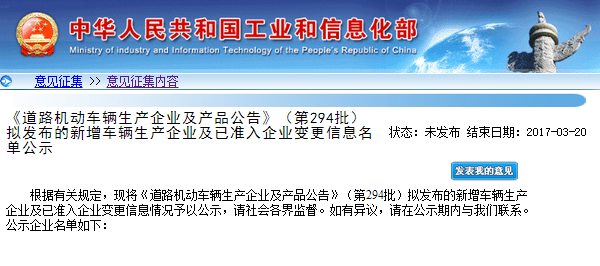 根据有关规定,现将《道路机动车辆生产企业及产品公告》(第294批)拟发布的新增车辆生产企业 ... 查阅全文
