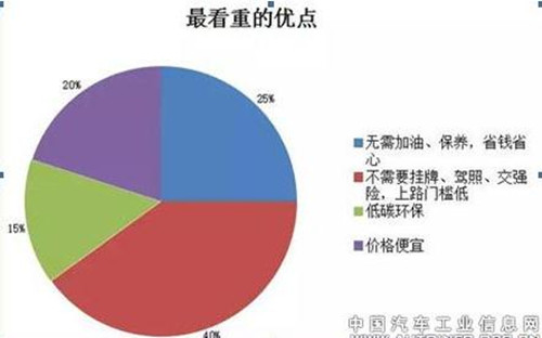 从市场调查中可以看出,相比于价格,人们更看重的是它不用上牌照,比摩托车还要方便的特点,而低碳环保则在价格低廉之前成为人们购买时的考虑。