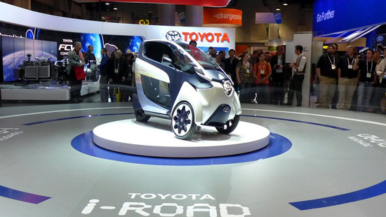丰田汽车公司在此次展会上带来了三轮概念车“i-Road”。这款车被称作是“城市通勤车”,其车身窄小,依靠纯电力驱动,能很好的应对大城市的拥堵和环境污染问题。