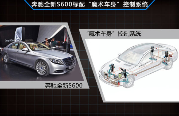 奔驰全新S600车型将标配“魔术车身”控制系统,此外还有驾驶辅助选装包等。“魔术车身”控制系统由主动式悬架系统、前置摄像头系统构成,RSS路面扫描系统的摄像头会自动检测路面状况,然后根据需要调节悬架的软硬程度或者高低程度,以应对各种路面情况。动力上其搭载一款全新的V12双涡轮增压引擎,未来也将引入国内销售。