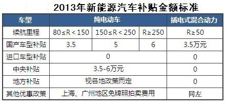 新能源汽车的发展已迫在眉睫,近几年,我国政府也因此出台了相关政策对新能源汽车发展的给予支持和鼓励。从2013年新能源补贴新政来看,中央将对纯电动汽车最高补6万元,插电式混合动力最高补3.5万元,新能源汽车还可以享用有地方补贴和其他优惠政策。同时,政府对新能源汽车发展还提出了明确的目标,到2015年,纯电动汽车和插电式混合动力汽车累计产销量力争达到50万辆;到2020年,纯电动汽车和插电式混合动力汽车生产能力达200万辆、累计产销量超过500万辆。