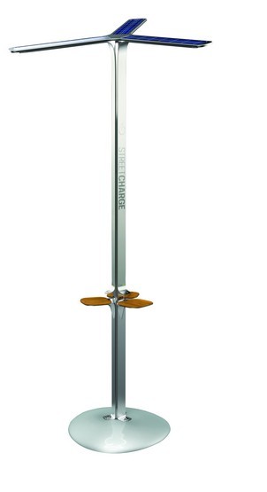 纽约市的居民以后有福了,太阳能厂商Goal Zero, 设计公司Pensa联手运营商AT&T正在筹建街边充电站,外形设计像一个高个的金属杆。配置6个USB端口和3个小支撑架。金属杆顶部是一个15瓦的太阳能电池板,另外电池板内部有一个168瓦时的锂电池,确保充电站在晚上或者阴天的时候有足够的电力给路过的群众充电。