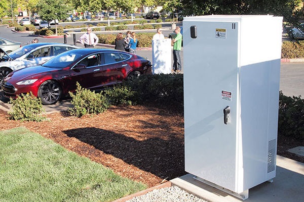 6.这个外观比较像冰箱的设备就是特斯拉充电桩。内部有十几个10kw的充电器,由计算机控制。一个120kw的充电桩可以同时为两辆车充电。