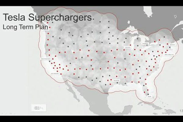 10.按照Tesla的计划,在2015年左右Supercharger将覆盖整个美国。一旦建成,这将是一个庞大的充电站网络,其所带来的附加价值十分可观。此外,这个充电网络将是美国乃至世界上第一个电动汽车能源供给网络,在今后电动汽车普及时,Supercharger将成为充电桩的首选。