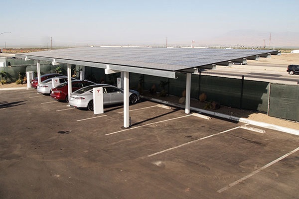5.特斯拉位于加州Tejon的充电桩是第一个使用太阳能充电的充电桩。太阳能作为可再生资源是特斯拉汽车的不二选择。同时也可以降低运营成本。