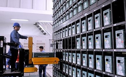 国家电网杭州供电公司的员工在古翠电动汽车充换电站为汽车能源电池充电。新华社记者 李欣 摄