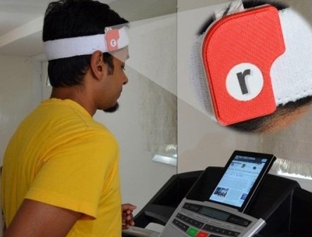 随着生活水平的提高,很多人越来越注重自身健康问题,因此很多人投身健身房内享受运动带来的快乐。但有些运动毕竟是非常枯燥的,就像健身房中跑步时,不能“边阅读边运动”让人倍感无聊。近日,Weartrons公司研发出一款名为Run-n-Read的可穿戴设备,即“跑步阅读”头戴式设备。它可以挂在T恤上或系在发带上,即使跑步时也能像躺在沙发上一样平稳地看书。