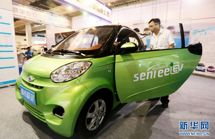 7月6日,观众在车展上了解一款电动汽车 新华社发