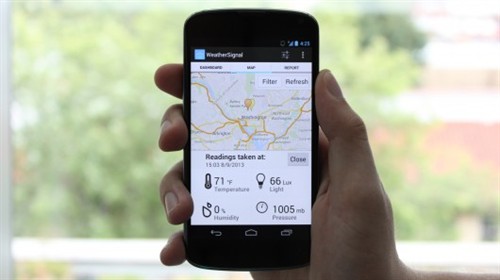 这一公司现在启动了WeatherSignal程序的衍生品,使用在有空气温度、湿度、压力感应器的手机。最终,它是希望这一程序能够用在一个众人数据源的天气预报系统,这一系统能够用来为特定的区域,如一个提供的城市区域,提供实时天气信息。它甚至可能与CitiSense程序/设备混合,它能提供当地的众人数据源的空气质量数值。
