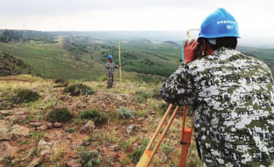 位于河北省张家口市张北县的国家风光储输示范工程二期建设日前全面开工。据了解,二期扩建工程项目,总投资将达到62亿元人民币。根据规划,二期工程计划新增风力发电装机容量40万千瓦、光伏发电装机容量6万千瓦和化学储能装置5万千瓦。图为施工人员在进行线路走廊测量。