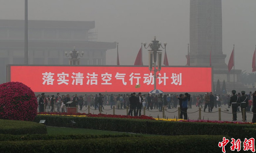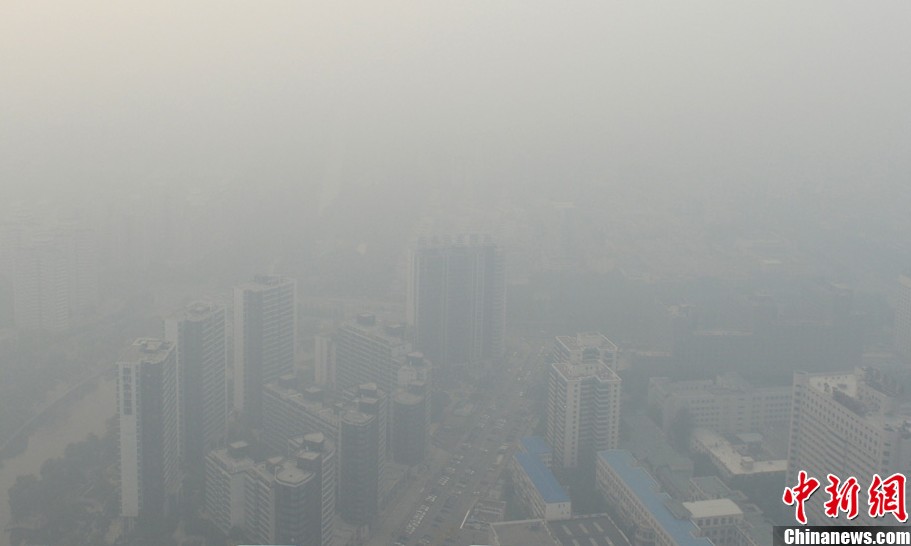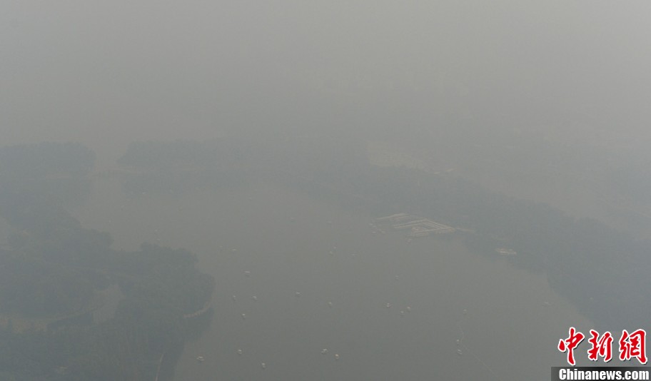 10月5日,从北京中央电视塔238米观景平台俯瞰严重污染的北京。当日,北京市PM2.5浓度已达重度污染。据中央气象台消息,中央气象台5日18时发布霾黄色预警,预计今天夜间到明天白天,河北大部、京津地区、山西东部和南部、河南北部等地有中度霾,局部地区有重度霾。廖攀/摄