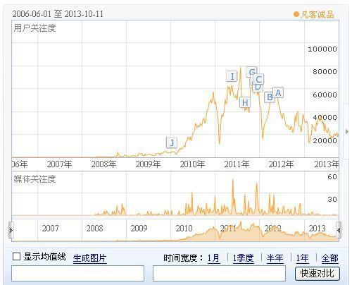 凡客的成功可以说是赶上了好时机,金融危机前融到资,赶上了08年的电商热潮,又无心插柳的做了凡客体,借助明星效应做得风声水起。但显然营销的老本已经被吃得差不多了。百度指数从高峰时的8万到现在狂砸广告都只有2万,凡客诚品的今天是消费者用脚投票的结果。