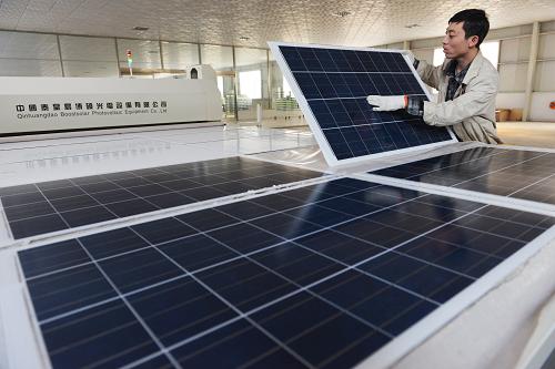 2013年10月22日,位于山东省邹平县黛西街道的希莱特光电科技有限公司工人在检查压制的太阳能电池板。该公司成立三年来,自主研发太阳能电池组件以及太阳能电站系统等产品,年产能达100兆瓦。新华社发(董乃德 摄)