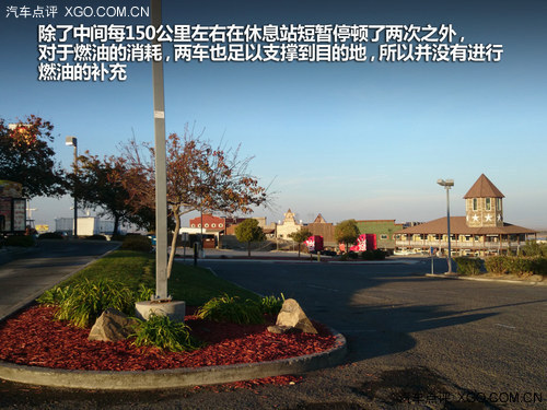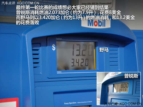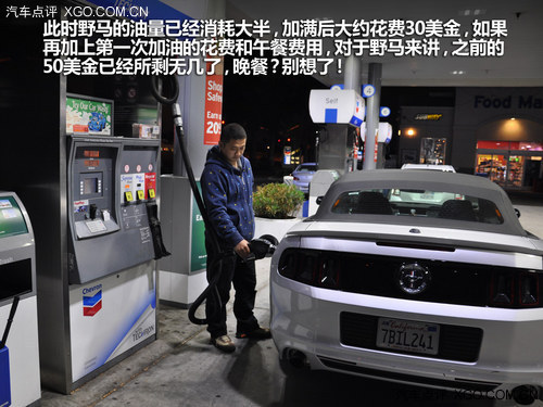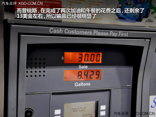 好了,言归正传,随着时间的推移,夜幕也逐渐袭来,经过近五个小时的长途跋涉,两辆车终于在19:44分到达了指定的目的地,合照之后奔向加油站,此时野马的油量已经消耗大半,加满后大约花费30美金,如果再加上第一次加油的花费和午餐费用,对于野马来讲,之前的50美金已经所剩无几了,晚餐?别想了!而普锐斯,在完成了两次加油和午餐的花费之后,还剩余了13美金左右,所以输赢已经很明显了。