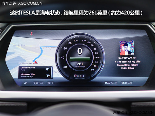 为了摸清TESLA的情况,我们并没有直接将目的地约定在最终要到达的旧金山特斯拉总部,而是首先约定在距离始发地140公里的特斯拉充电站,集合之后再做计划,经过这一番折腾之后,终于在上午11:37分时启程了,这时TESLA是满电状态,续航里程为261英里(约为420公里)。
