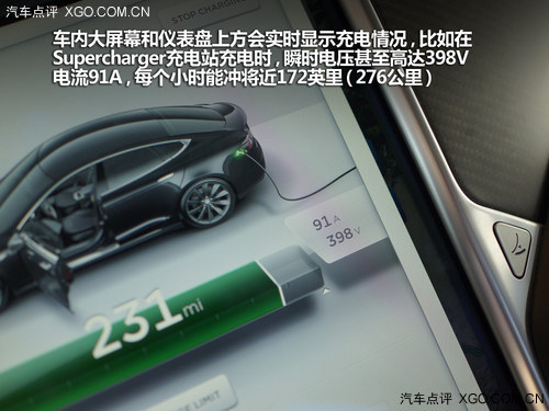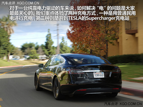 对于一台纯靠电力驱动的车来说,如何解决“电”的问题是大家最最关心的。我们重点体验了两种充电方式,一种是用普通民用电进行充电,第二种则是开到TESLA的Supercharger充电站。