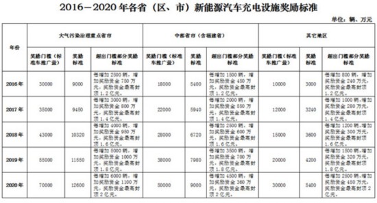 2016年3月底前,各省(区、市)应将新能源汽车推广应用实施方案及充电基础设施运营方案报财政部、科技部、工业和信息化部、发展改革委、能源局等部门(以下简称“五部门”)备案。未按要求制定相关办法的将不得享受中央财政的充电基础设施奖励资金。