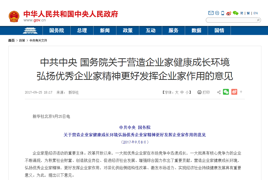 营造企业家健康成长环境,弘扬优秀企业家精神,更好发挥企业家作用,对深化供给侧结构性改革 ... 查阅全文 2017-10-08
